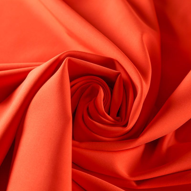 Итальянский плотный матовый бифлекс красно-оранжевого оттенка. Ткань отлично тянется во всех направлениях, не прозрачный, одежда из него не сковывает движения. Хорошо впитывает влагу и быстро высыхает, не вызывет аллергии и раздражения. Подойдет для пошива купальников, пляжных и коктейльных платьев, топов, боди, леггинсов, велосипедок и лосин, костюмов фигуристов, танцоров, гимнастов.