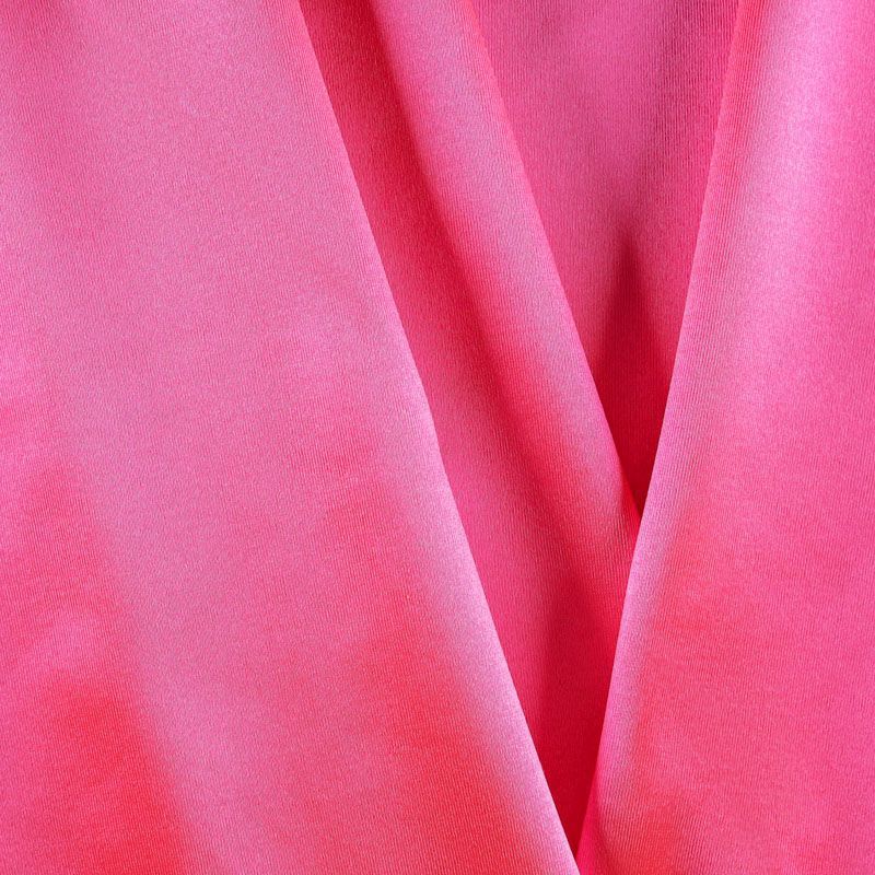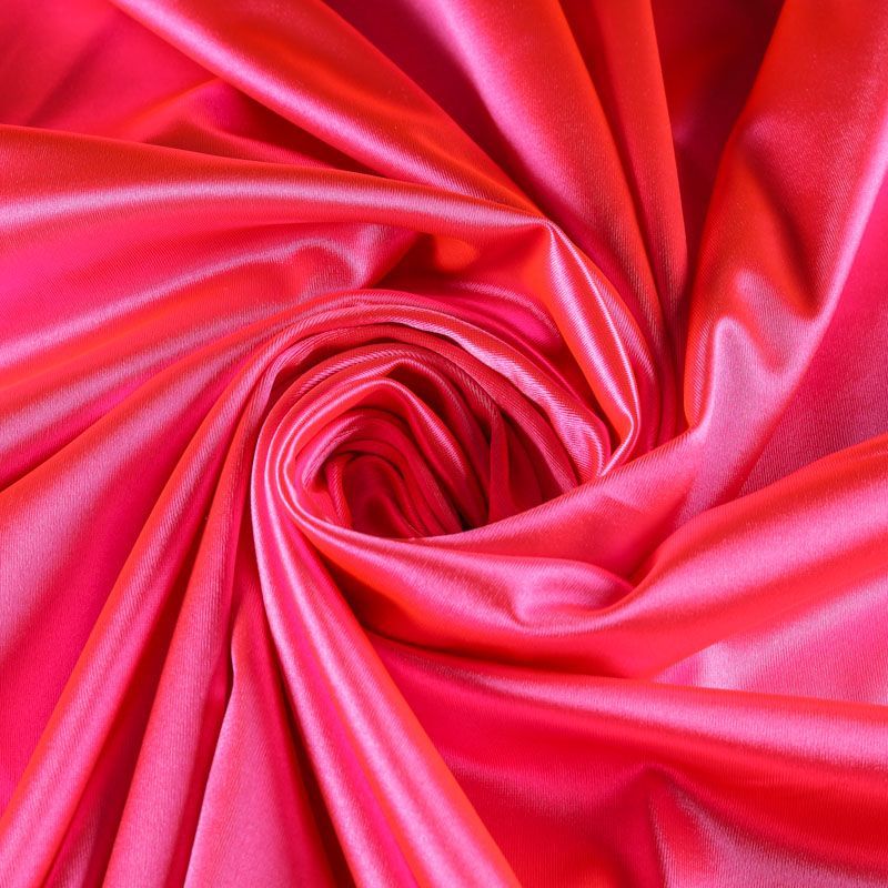 Лицевая сторона ткани с выраженным блеском, очень приятная на ощупь, "скользкая", как шелк. Ткань плотная, отлично тянется, одежда из него не сковывает движения. Хорошо впитывает влагу и быстро высыхает, не вызывет аллергии и раздражения. Подойдет для пошива купальников, парео, пляжных и коктейльных платьев, леггинсов и лосин, костюмов фигуристов, танцоров, гимнастов.