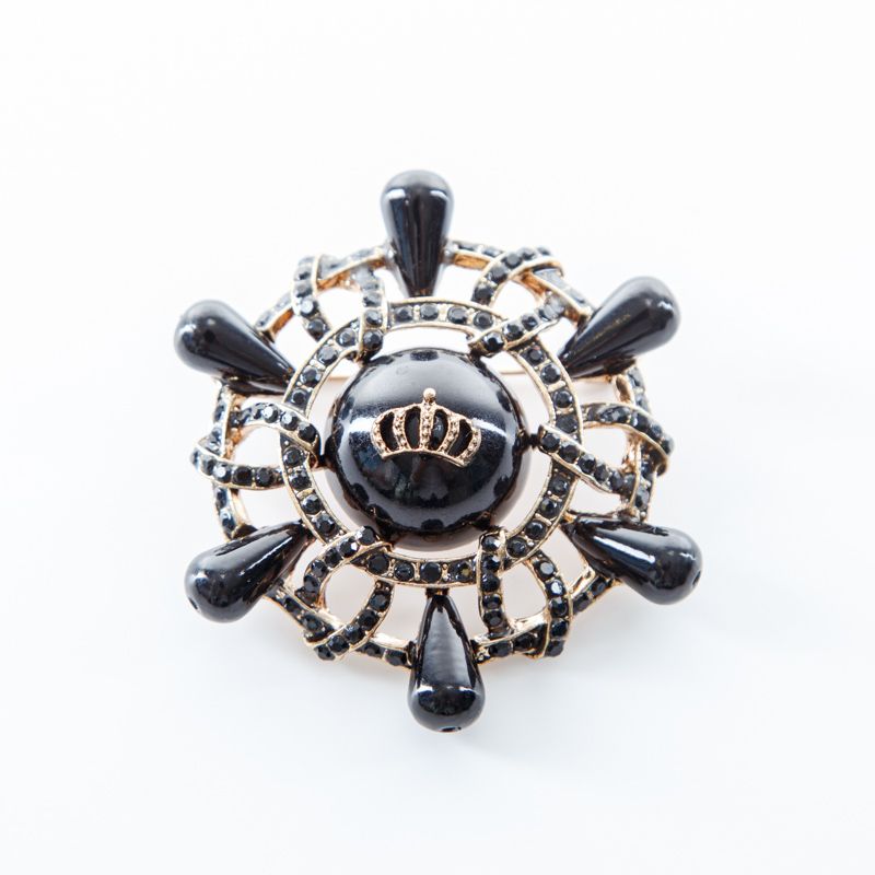 Брошь декоративная d60 мм стразы ACS0479 золотой/черный в Вологде