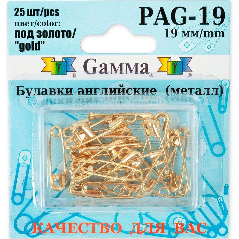 Булавки английские Gamma 19 мм 25 шт PAG-19 золото