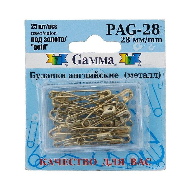 Булавки английские Gamma 28 мм 25 шт PAG-28 золото
