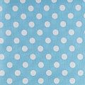 Плотная натуральная ткань с особым принципом переплетения нитей: крест-накрест. Имеет гладкую матовую поверхность чуть шероховатую на ощупь, не тянется, немного просвечивает. Прочная и стойкая к износу, надолго сохраняет яркость красок, не растягивается при стирке, практически не мнется. Принт в белый горошек среднего размера (1,5 см) на голубом фоне прекрасно подойдет для пошива постельного белья, изготовления пеленок, бортиков для кроватки, домашней одежды и других предметов интерьера.