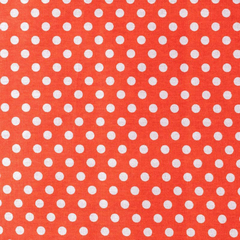 Плотная натуральная ткань с особым принципом переплетения нитей: крест-накрест. Имеет гладкую матовую поверхность чуть шероховатую на ощупь, не тянется, немного просвечивает. Прочная и стойкая к износу, надолго сохраняет яркость красок, не растягивается при стирке, практически не мнется. Мелкий белый горошек (5 мм) на насыщенном красном фоне прекрасно подойдет для пошива постельного белья, изготовления пеленок, бортиков для кроватки, домашней одежды и других предметов интерьера.