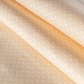 Плотная натуральная ткань с особым принципом переплетения нитей: крест-накрест. Имеет гладкую матовую поверхность чуть шероховатую на ощупь, не тянется, немного просвечивает. Прочная и стойкая к износу, надолго сохраняет яркость красок, не растягивается при стирке, практически не мнется. Мелкий белый горошек (3 мм) на пастельном дынном фоне прекрасно подойдет для пошива постельного белья, изготовления пеленок, бортиков для кроватки, домашней одежды и других предметов интерьера.