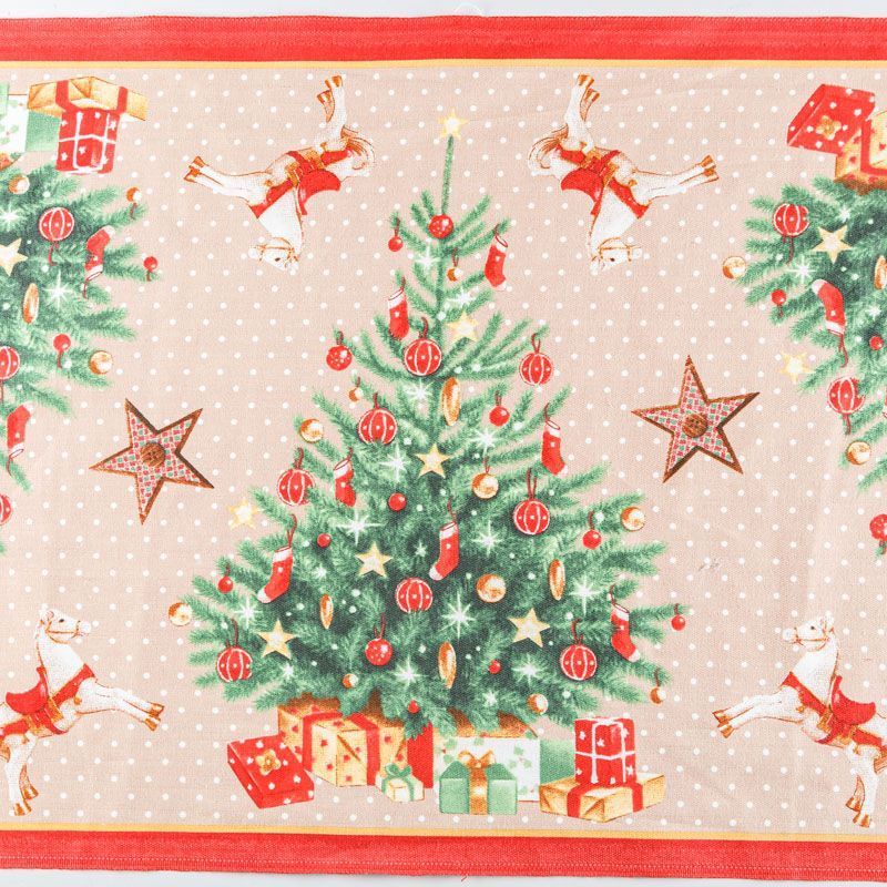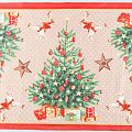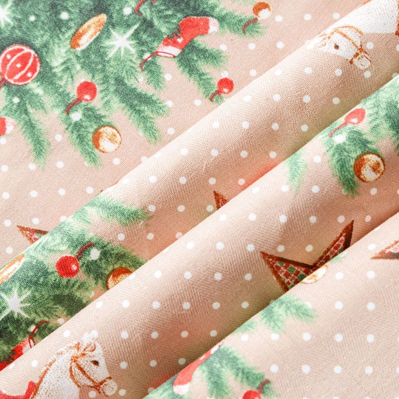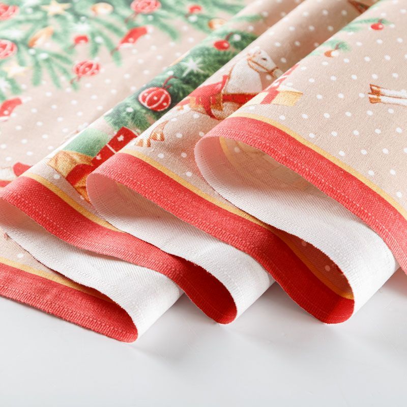 Узкая плотная хлопковая ткань с твидовым плетением елочкой и ярким новогодним принтом. Идельно подойдет для украшения праздничного стола, итерьера, для пошива кухонных полотенец, салфеток, персонников, фартуков, прихваток и т.д.