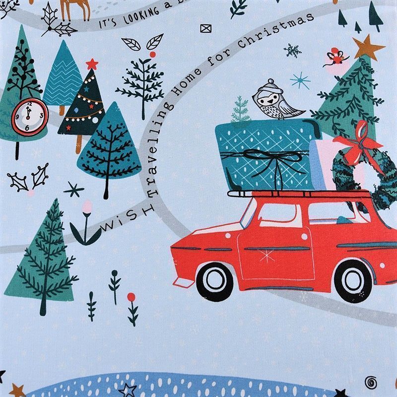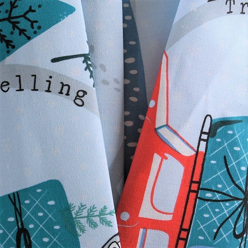 Узкая плотная хлопковая ткань с твидовым плетением елочкой и ярким новогодним принтом. Идельно подойдет для украшения праздничного стола, итерьера, для пошива кухонных полотенец, салфеток, персонников, фартуков, прихваток и т.д.