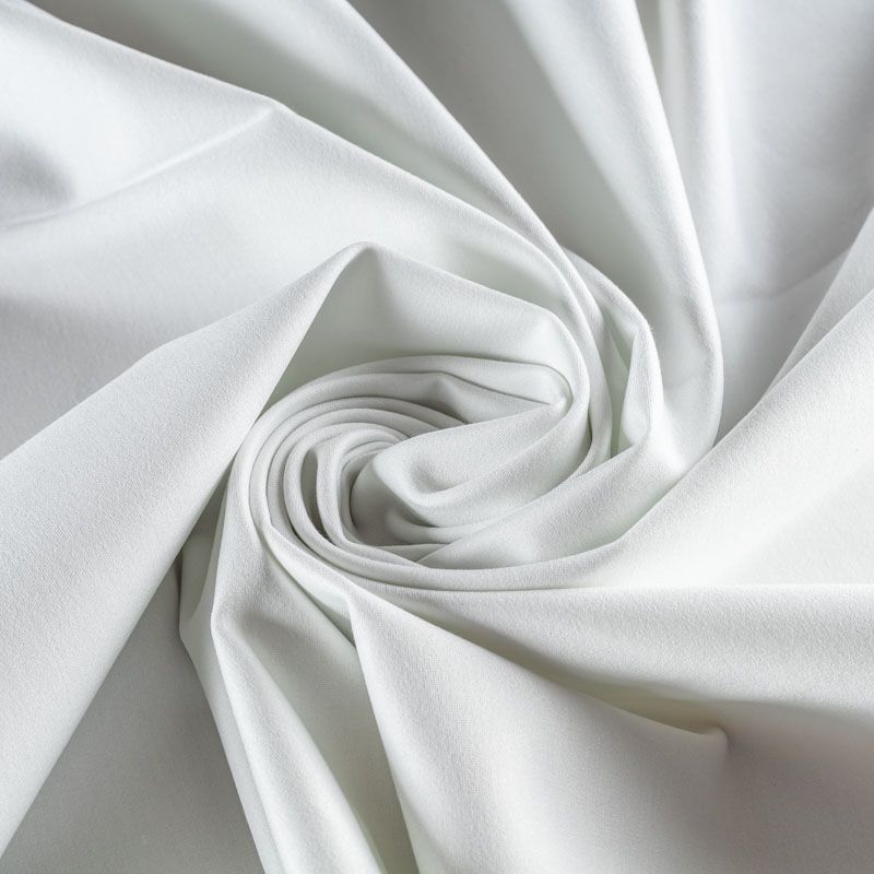 Плотное трикотажное полотно. Обе стороны ткани ровные, гладкие. Материал эластичный, имеет растяжимость по всем сторонам, хорошо держит форму, уютный, приятный к телу и удобный в носке. Применяется в пошиве платьев, юбок, костюмов, жакетов.