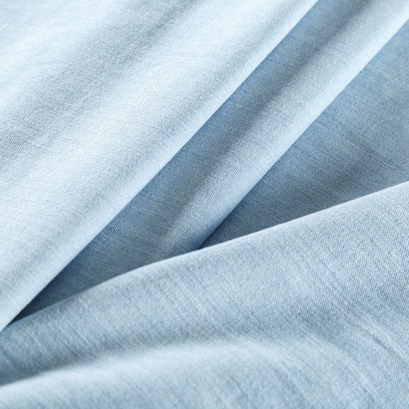 Поверхность ткани матовая, фактурная в диагональный рубчик. Материал имеет высокую плотность, при небольшой толщине, мягкий и приятный на ощупь, эластичный, обладает устойчивостью к истиранию и механическим повреждениям. Подойдет для пошива рубашек, сарафанов, платьев, юбок, шорт, брюк-джоггеров, лёгких курток и жакетов.