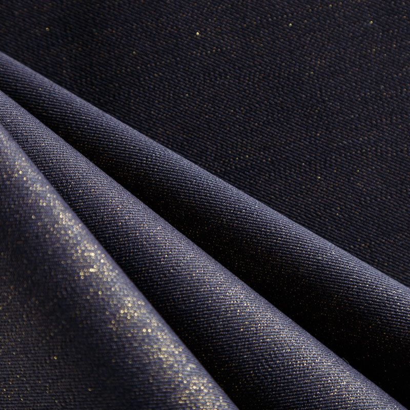 Нарядная итальянская джинсовая ткань с золотистым люрексом по лицевой стороне и черная с изнаночной. Ткань имеет диагональное плетение, хорошую плотность, отлично держит форму, приятная на ощупь, не эластичная, обладает устойчивостью к истиранию и механическим повреждениям. Подойдет для пошива куртки-рубашки, сарафанов, платьев, юбок, шорт, джинсов различных фасонов, лёгких курток, бомберов и жакетов.