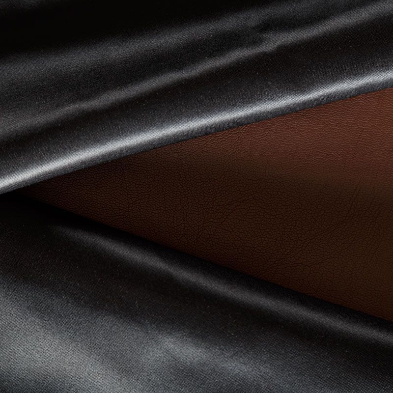 Искусственный материал, имитирующий натуральную кожу, на черной трикотажной основе. Экокожа тоньше натуральной, не мнется, пластична, хорошо облегает фигуру. Подойдет для пошива куртки, костюма, платья, юбки, брюк, шорт, комбинезона, сумки, рюкзака.