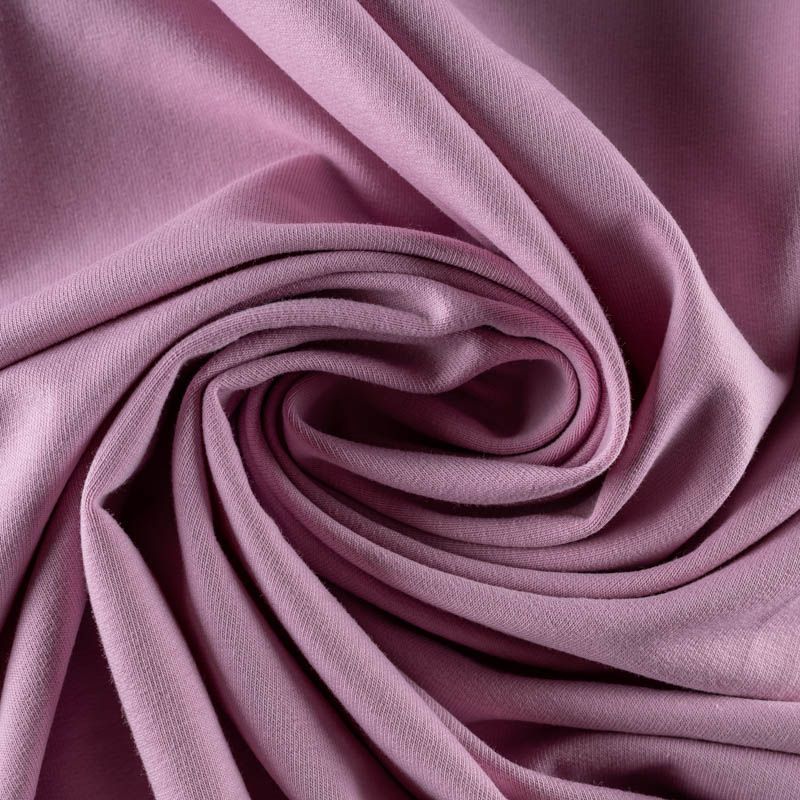 Плотный, но мягкий эластичный трикотаж. Лицевая сторона гладкая, без блеска, мелкой вязки. Изнанка – с небольшим однородным ворсом или петля. Прекрасный вариант для пошива платьев и костюмов, легких толстовок, свитшотов, спортивной, детской и  домашней одежды.