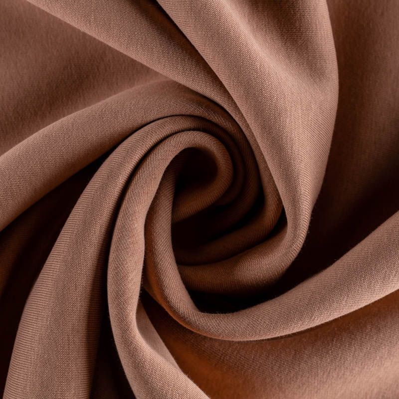 Плотный, но легкий и мягкий, с начесом по изнанке. Ткань хорошо тянется, прочная и износостойкая.  Лицевая сторона имеет выраженную трикотажную структуру. Подходит для пошива утепленных  спортивных костюмов, свитшотов, джемперов.