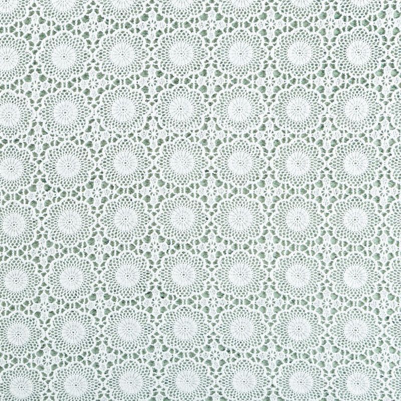 Гипюр-макраме представляет собой ажурное полотно, имеющее рельефную текстуру с цветочным ажурным плетением по всей ширине и фестонами по обе стороны кромок. Материал прозрачный на теле и на просвет, требуется подклад. Всегда актуален при создании утончённых и роскошных нарядов, придавая им дороговизны и оригинальности. Может использоваться для пошива платьев, костюмов прямого кроя, изготовления декоративных элеметов. Набирается на изделие объемом.