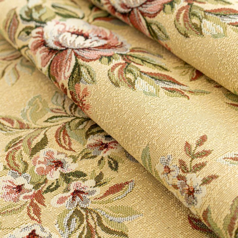 Гобелен представляет собой ткань, выполненную  перекрестным плетением нитей с одномоментным созданием сюжетной или орнаментальной композиции. Это плотный материал высокую прочность и износостойкость. Гобелен используют для пошива плотных светонепроницаемых штор, декоративного домашнего текстиля и аксессуаров, в мебельном производстве для обивки мебели. Так же применяется в рукоделии: модные кошельки, сумочки, пояса и другие аксессуары и при изготовлении дизайнерской одежды. Цветочный рисунок - настоящее украшение, придает изделию естественность, чувственность и налет романтичности.
