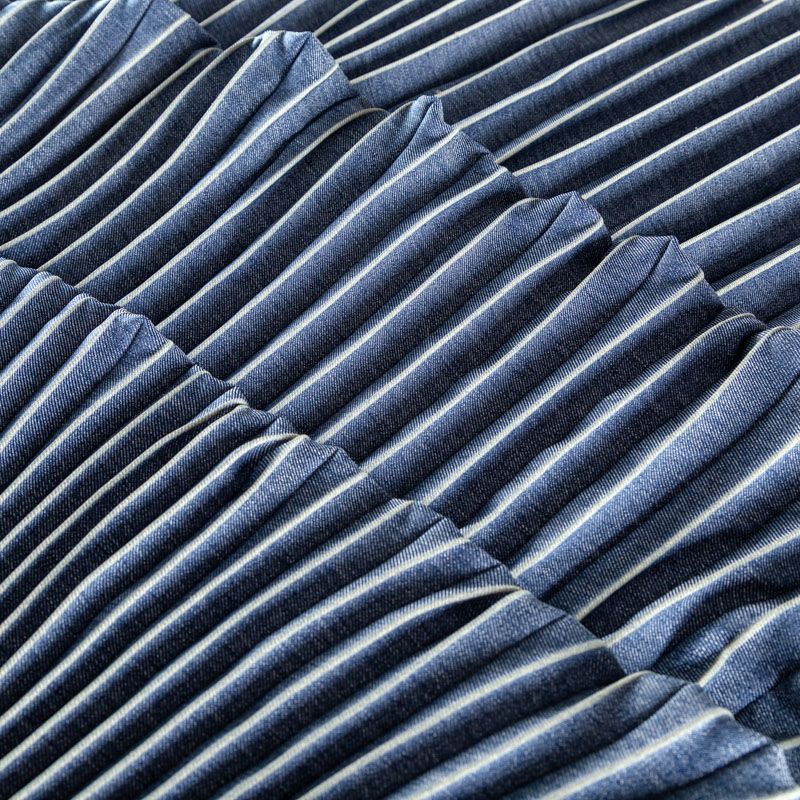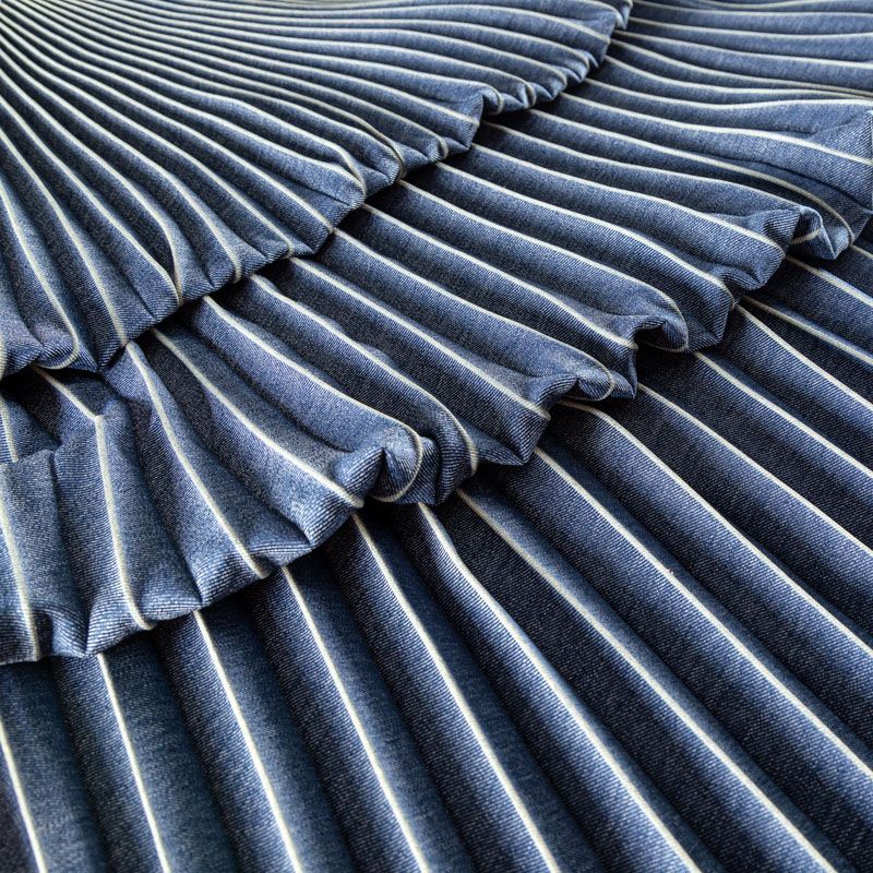 Готовый гофрированный купон из матовой твиловой ткани, имитирующей джинс. Объем по низу 160 см, по талии 60 см, длина 110 см. Ткань раскроена полусолнцем, гофре заложено сверху вниз на увеличение. Ребро складки выделено песочным цветом. Гофре визуально вытягивает и стройнит фигуру, именно поэтому уже который год юбки и платья гофре находятся в числе топовых вещей женского гардероба в классическом исполнении – миди и в пол, или в оригинальном ассиметричном крое. Можно использовать для клиновидной вставки в другую юбку, в спинку или рукав.
