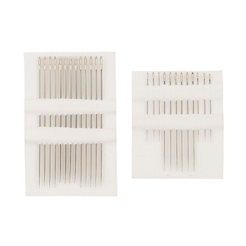 Набор игл для ручного шитья, наметки. Иглы сделаны из высокоуглеродистой стали с идеальной гладкой поверхностью и никелированным покрытием, которое защищает иглу от коррозии и окисления. Ушки внутри игл отполированы и не имеют зацепок, поэтому нить не будет рваться при работе. Размер игл: 0.53x27.0 - 6шт; 0.71x39 - 6шт; 0.84x51 - 9шт; 1.09x50 - 4шт.
