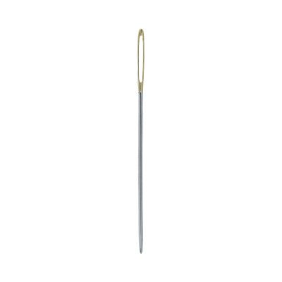 Гобеленовые иглы предназначен для работы с трикотажными тканями и гобеленами. Качественная сталь с хромированным покрытием обладает износостойкостью и ориентирована на долгосрочное использование. При работе с иглами рекомендуется использовать наперсток для защиты пальцев от случайных повреждений. Оптимальное место хранения игл - закрытый футляр или игольница с магнитным основанием. Форма острия закругленная. Длинное ушко позволяет легко продевать нить любой толщины и вставлять нити в несколько сложений. Диаметр иглы - 1.3 мм.