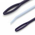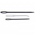 Набор из трех игл для шерсти особенно подходит для работы с мельницами для вязания, шнуроплетами и продуктами для изготовления на устройствах Loom. Они изготовлены из пластмассы сливового и серого цвета, имеют большое ушко для простого вдевания шерсти. Серая игла для перекидывания петель оснащена изогнутым, скругленным острием. Обе иглы сливового цвета имеют прямое, скругленное острие. Эти иглы для шерсти чрезвычайно стабильны, но тем не менее прочны и также подходят для универсального использования при работе с шерстью. В упаковку входят 3 иглы размером 72 x 2,6 мм, 89 x 3,1 мм и 101 x 3,2 мм.