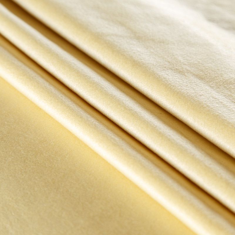 Итальянский пальтовый кашемир в разбеленном желтом оттенке. Ткань мягкая, пластичная, приятная на ощупь, гибкая, средней толщины, при этом высокой плотности. Поверхность имеет короткий ворс. Подойдет для пошива пальто, куртки, жакета, парки, кейпа, жакета или пончо.