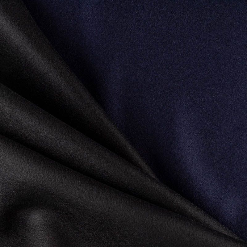 Пальтовый 2-х сторонний кашемир темно-синего оттенка. Вторая сторона черного цвета. Ткань необычайно мягкая, приятная на ощупь, гибкая, средней толщины. Поверхность имеет короткий ворс. Подойдет для пошива пальто, куртки, жакета, парки, кейпа, жакета или пончо.