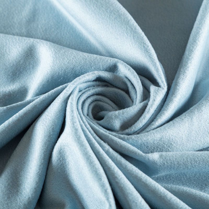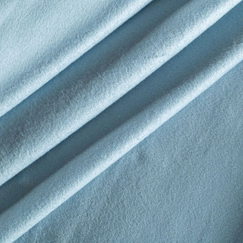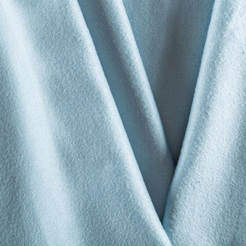 Пальтовый кашемир пастельного голубого оттенка. Ткань необычайно мягкая, приятная на ощупь, гибкая, средней толщины. Поверхность имеет короткий ворс. Подойдет для пошива пальто, куртки, жакета, парки, кейпа, жакета или пончо.