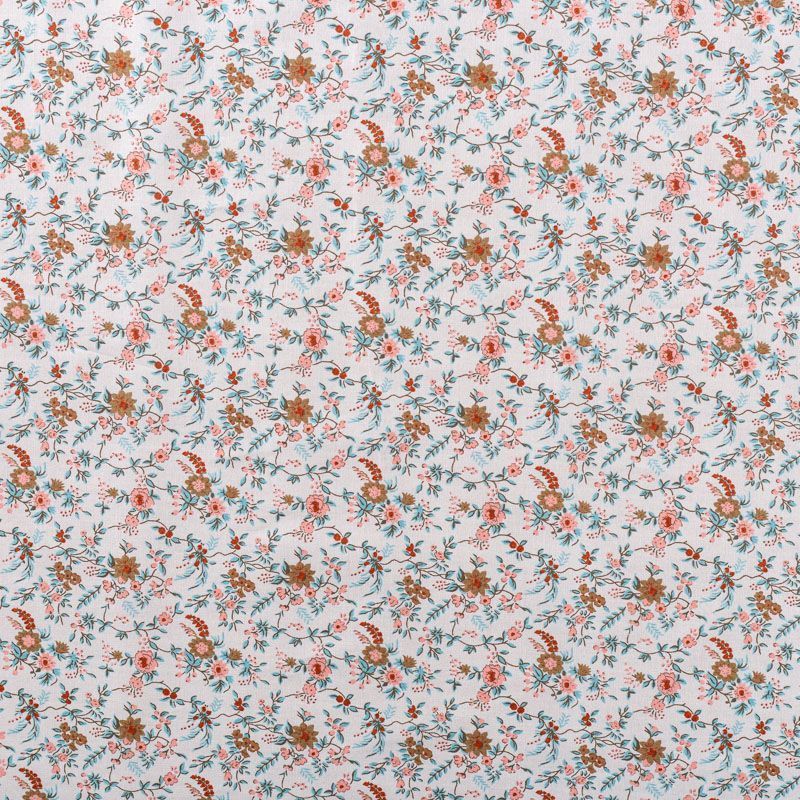 Плательно-рубашечный натуральный хлопок с цветочным узором коричнево-мятных тонах на молочном фоне. Ткань имеет плотное переплетение, матовую гладкую поверхность, хорошо держит форму, не прозрачная. Подойдет для пошива рубашек, платья-рубашки, юбки, сарафана, туники, домашней одежды.