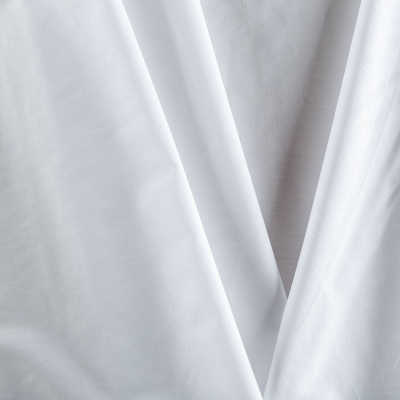 Итальянский плательно-рубашечный хлопок белоснежного оттенка. Ткань лёгкая, непрозрачная, поверхность матовая, гладкая, приятная к телу, хорошо драпируется, тянется за счет эластана в составе. Прекрасно подойдет блузы, платья-рубашки, летнего сарафана, туники.