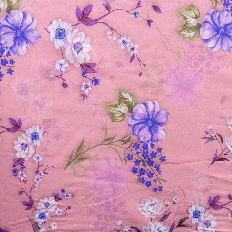 Плательно-рубашечный хлопок розовато-лилового оттенка с элегантным цветочным принтом. Ткань очень лёгкая, воздушная, тонкая, похожа на батист, немного прозрачная, поверхность матовая, гладкая, приятная к телу, хорошо драпируется. Прекрасно подойдет блузы, платья-рубашки, летнего сарафана, туники.