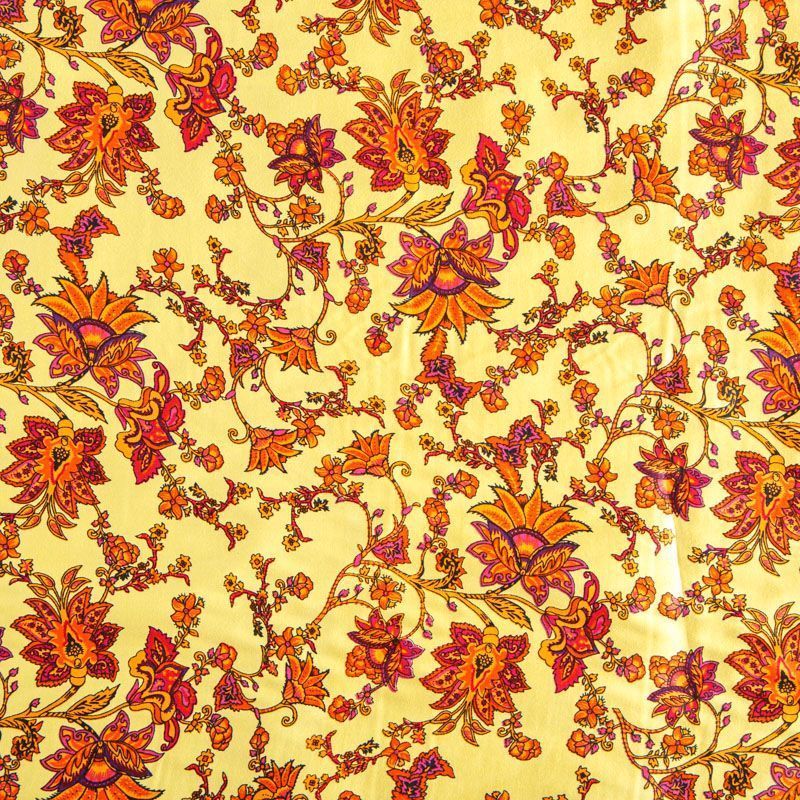 Плательно-рубашечная ткань из натурального хлопка с ярким цветочным принтом. Ткань легкая, тонкая, хорошо "дышит", слегка держит форму, не сухая, не прозрачная. Подойдет для пошива летнего платья, летящей юбки, блузы, сарафана, комбинезона или рубашки, а также для домашней одежды.