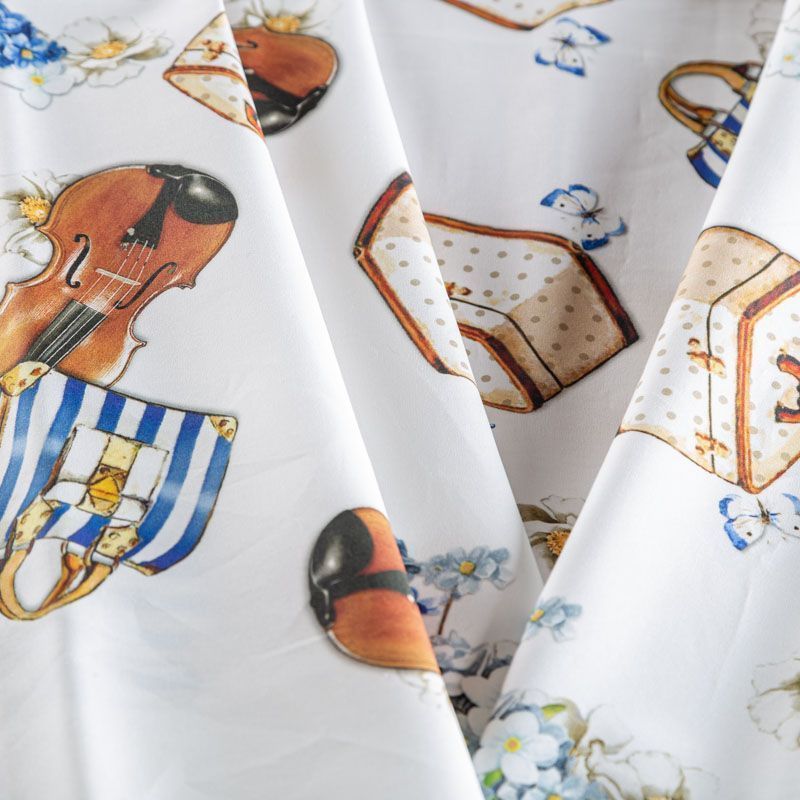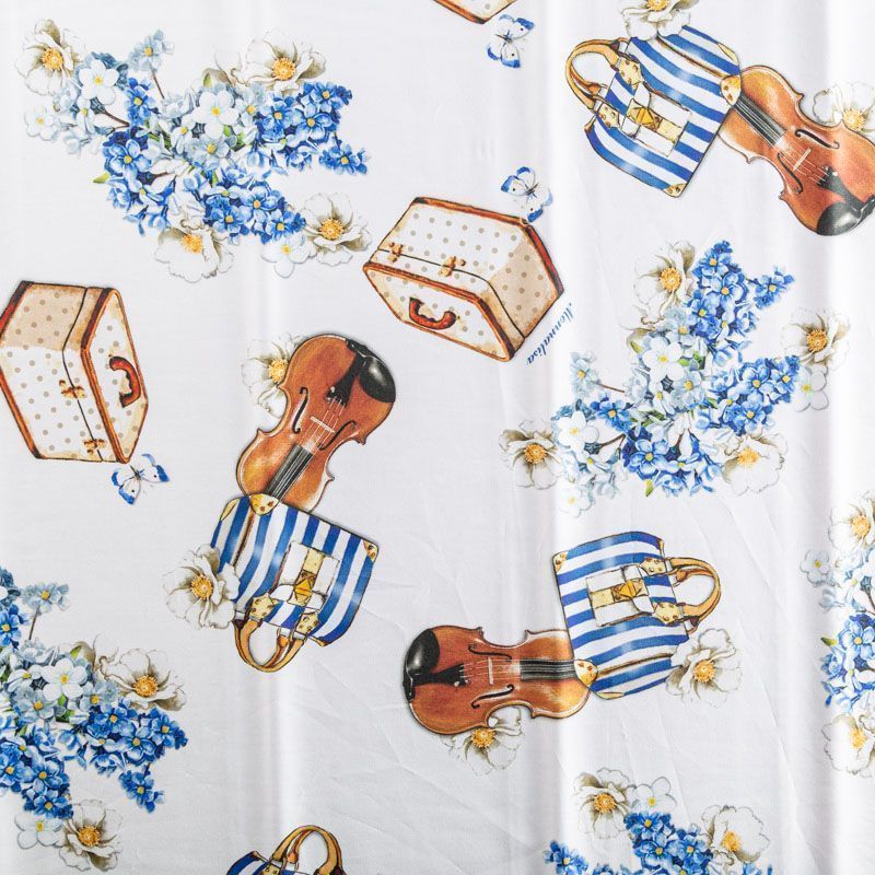 Плательно-рубашечный хлопок от бренда Monnalisa с круизным летним принтом в сине-голубых оттенках. Ткань пластичная, легкая, немного просвечивает, поверхность гладкая, приятная на ощупь. Подойдет для пошива платья, рубашек, платья-рубашки, юбки, сарафана, туники, комбинезона, домашней одежды.