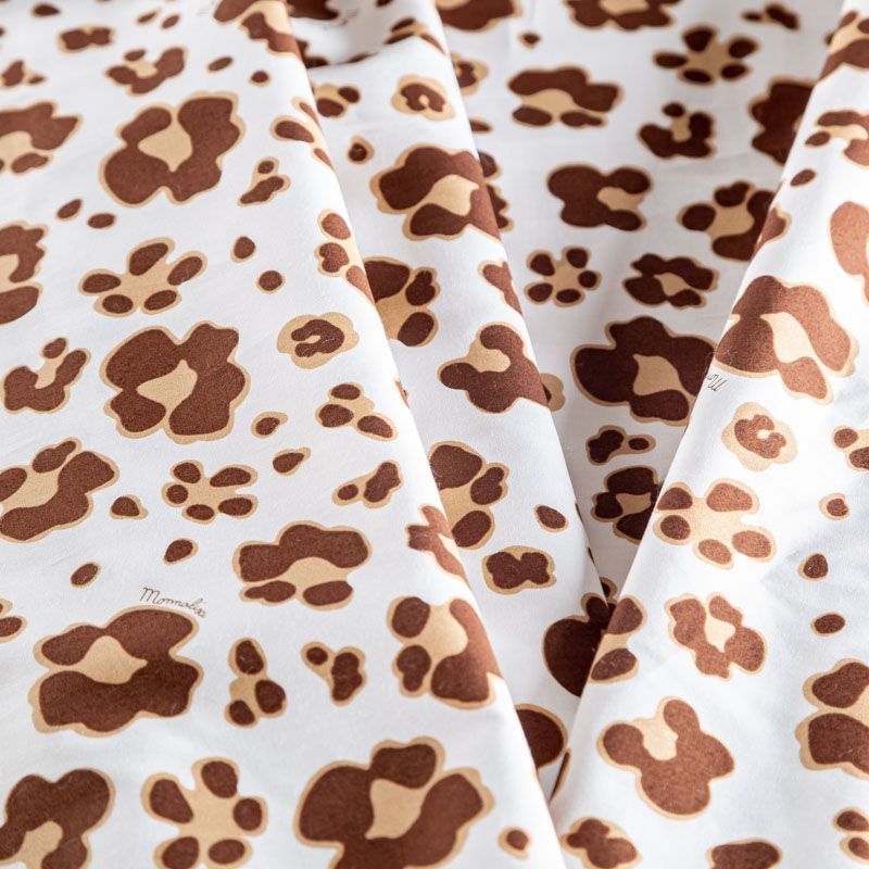 Плательно-рубашечный хлопок от бренда Monnalisa со стилизованным анималистическим принтом. Ткань пластичная, легкая, немного просвечивает, поверхность гладкая, приятная на ощупь. Подойдет для пошива платья, рубашек, платья-рубашки, юбки, сарафана, туники, комбинезона, домашней одежды.