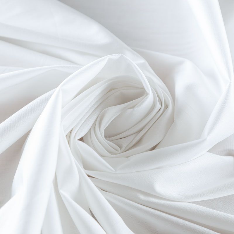 Итальянский плательно-рубашечный натуральный хлопок с эластаном в белоснежном оттенке. Ткань имеет плотное переплетение, матовую гладкую поверхность, хорошо держит форму, слегка прозрачная. Подойдет для пошива рубашек, платья-рубашки, юбки, сарафана, туники, топа, домашней одежды.