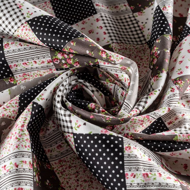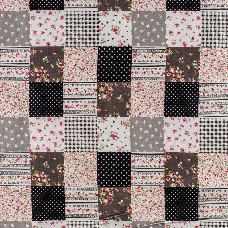 Ткань из натурального хлопка с рисунком в виде сшитых между собой разных лоскутков (печворк). Размер клетки 5*5 см. Ткань легкая, хорошо "дышит", мягкая, слегка прозрачная. Подойдет для пошива белья, рукоделия, печворка, изготовления предметов интерьера.