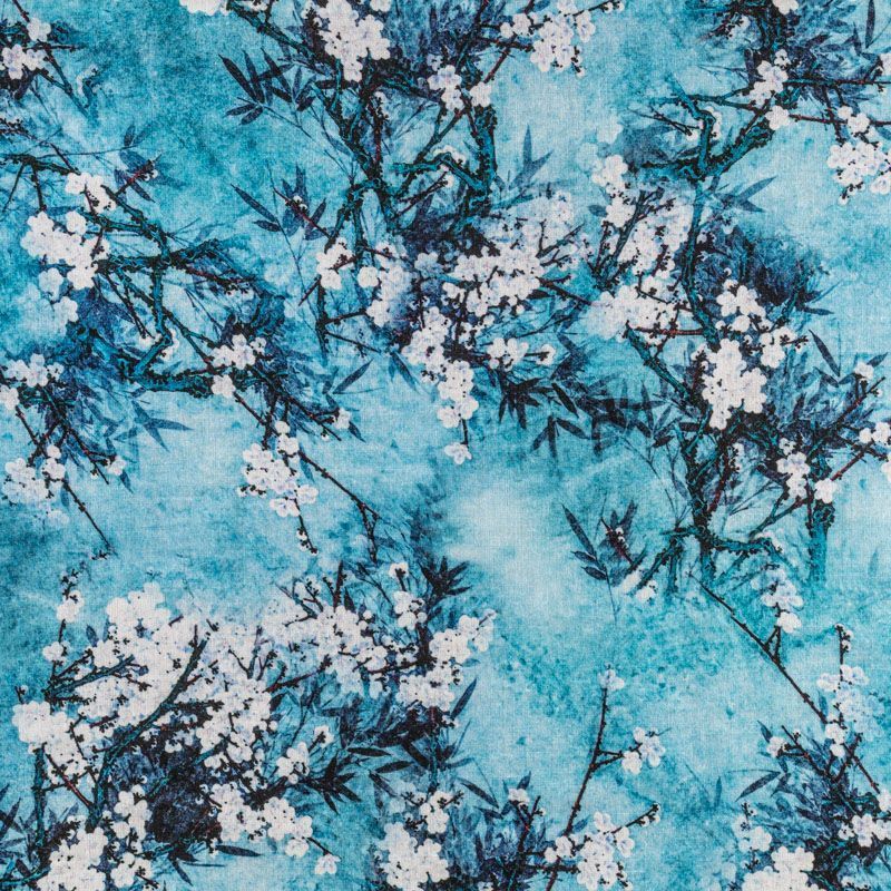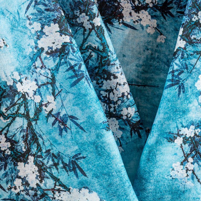 Плательно-блузочная ткань из натурального хлопка с крупным цветочным рисунком в бело-голубых оттенках. Ткань легкая, тонкая, хорошо "дышит", мягкая, слегка прозрачная. Подойдет для пошива летнего платья, летящей юбки, блузы, сарафана или рубашки.