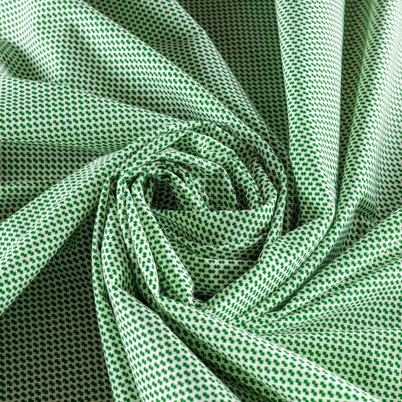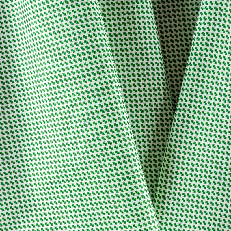 На белом фоне мелкий абстрактный геометрический рисунок зеленого цвета.