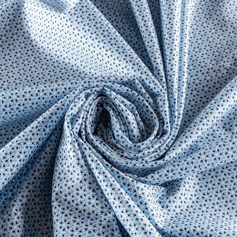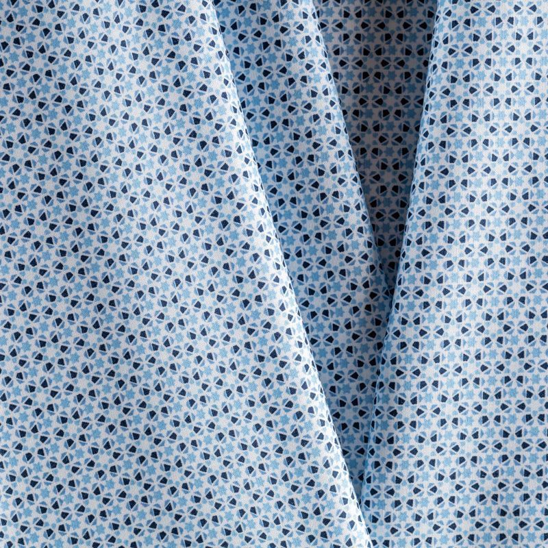 На белом фоне мелкий абстрактный геометрический рисунок сине-голубого цвета.