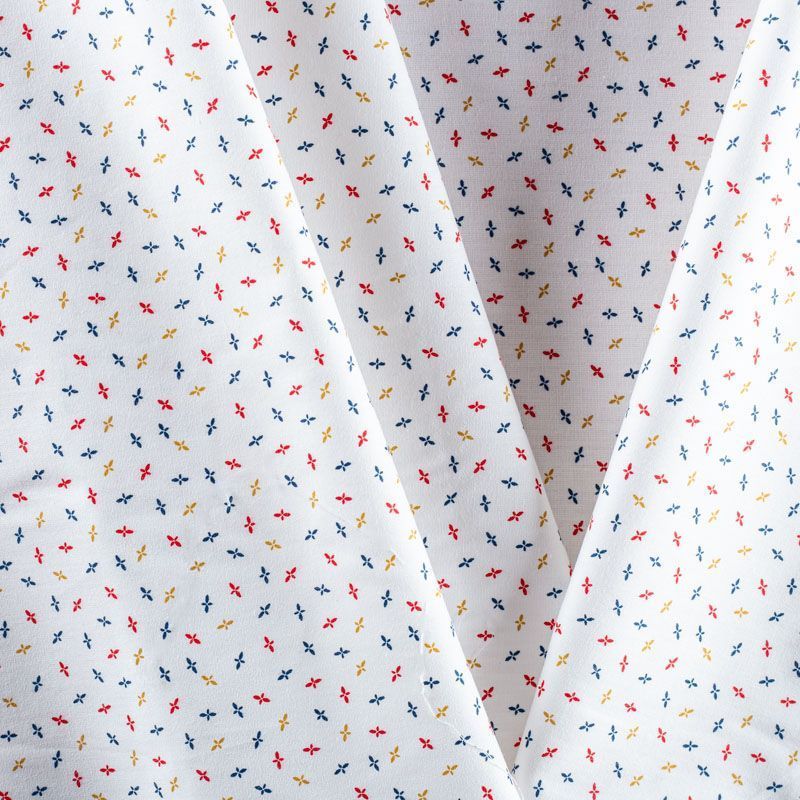 Плательно-рубашечный хлопок в разноцветный мелкий геометрический рисунок. Ткань мягкая, лёгкая, непрозрачная, пластичная и приятная к телу, хорошо драпируется, имеет гладкую матовую поверхность и сатиновое плетение. Прекрасно подойдет как для пошива платья-рубашки, сарафана, платьев различных фасонов, туники, топа, летнего костюма, комбинезона, мужской и детской одежды.