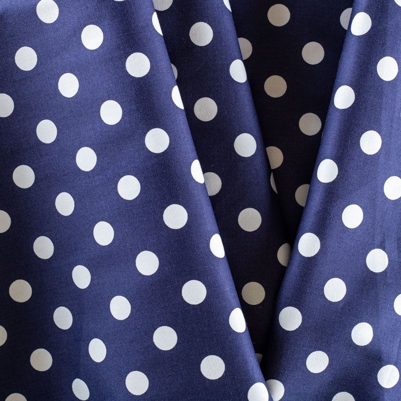 Итальянский костюмно-плательный хлопок темно-синего оттенка цвета в белый горох. Ткань приятная на ощупь тянется за счет эластана в составе, непрозрачная, средней плотности, поверхность гладкая, матовая. Подойдет для пошива костюма, жакета, юбки, платья и других изделий на весенне-летний сезон.