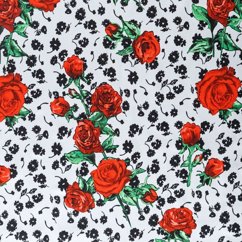 Ткань средней плотности, мягкая, приятная на ощупь, эластичная, держит форму, смотрится красиво, женственно. Подойдет для пошива костюма жакета, юбки, платья и других изделий, на теплый и прохладный сезоны.
