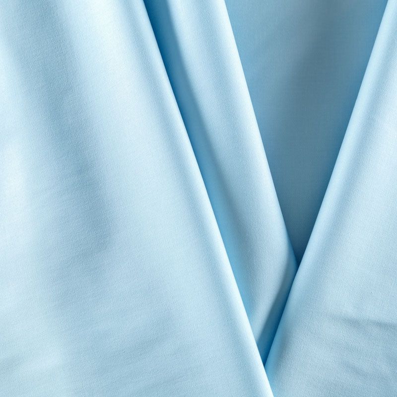 Итальянская хлопковая ткань средней плотности в голубом оттенке. Материал очень приятный на ощупь, эластичный, не жесткий, но держит форму. Подойдет для пошива куртки, парки, тренча, легкого жакета, юбки, джоггеров, шорт, платья-сафари и других изделий.
