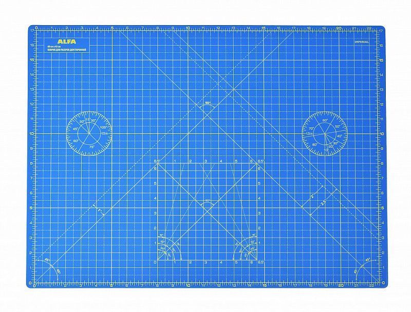 Коврик раскройный двусторонний ALFA 60*45см предназначен для нарезания ткани и подравнивания блоков при работе в технике пэчворк. Используется совместно с дисковым ножом и специализированными линейками. Поверхность коврика разработана таким образом, что на ней не остается следов от разрезов. Раскройный коврик ALFA имеет две рабочие поверхности и двустороннюю разметку: сантиметровую на одной стороне и дюймовую на другой. Дополнительно указаны углы на 45 и 60 градусов. Выполнен из первичного материала. Не содержит элементов вторичной обработки.