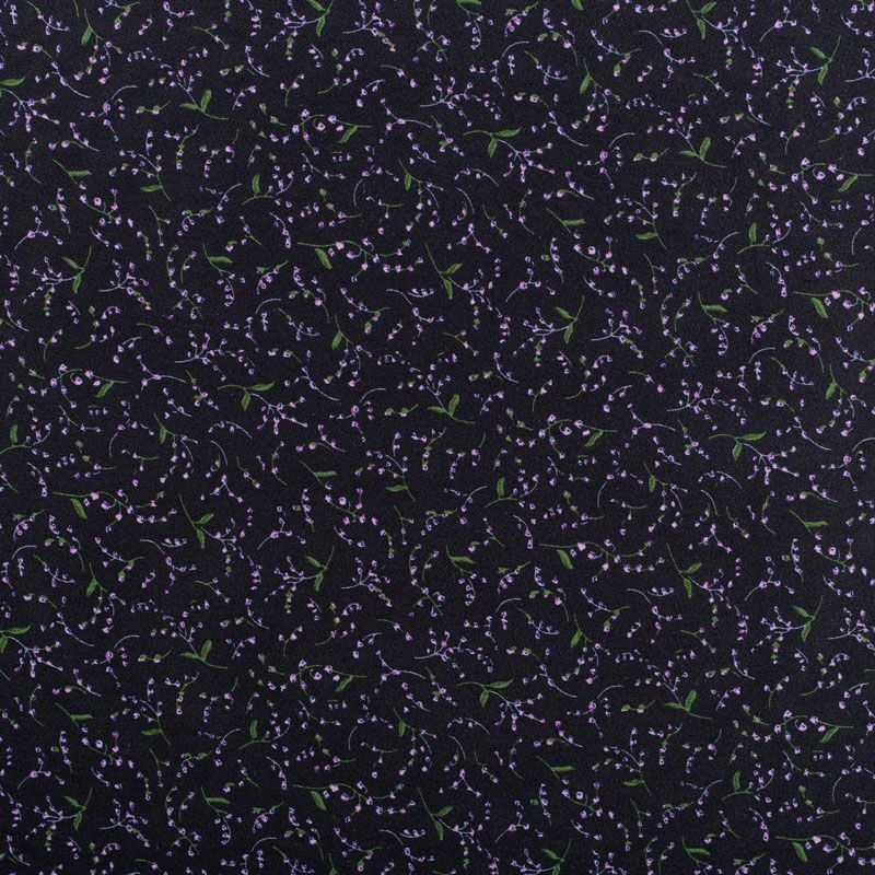 Плательный креп с мелким цветочным принтом. Ткань средней плотности, не толстая, пластичная, поверхность полотна матовая, с характерной мелкозернистой фактурой, прочная, практически не мнется, хорошо драпируется. Превосходно подойдет для пошива стильного костюма, юбки, платья, комбинезона, топа, брюк.