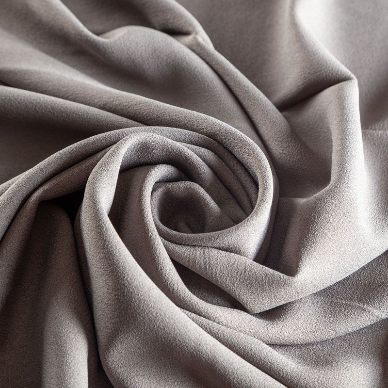 Итальянский смесовый креп плательной плотности красивого серого оттенка. Поверхность матовая и фактурная, ткань малосминаемая, тянется за счет эластана в составе, красиво драпируется, струится и дает объемную складку, не просвечивает.Идеально подойдет для шикарного платья, блузы, юбки, комбинезона, брюк свободного кроя.