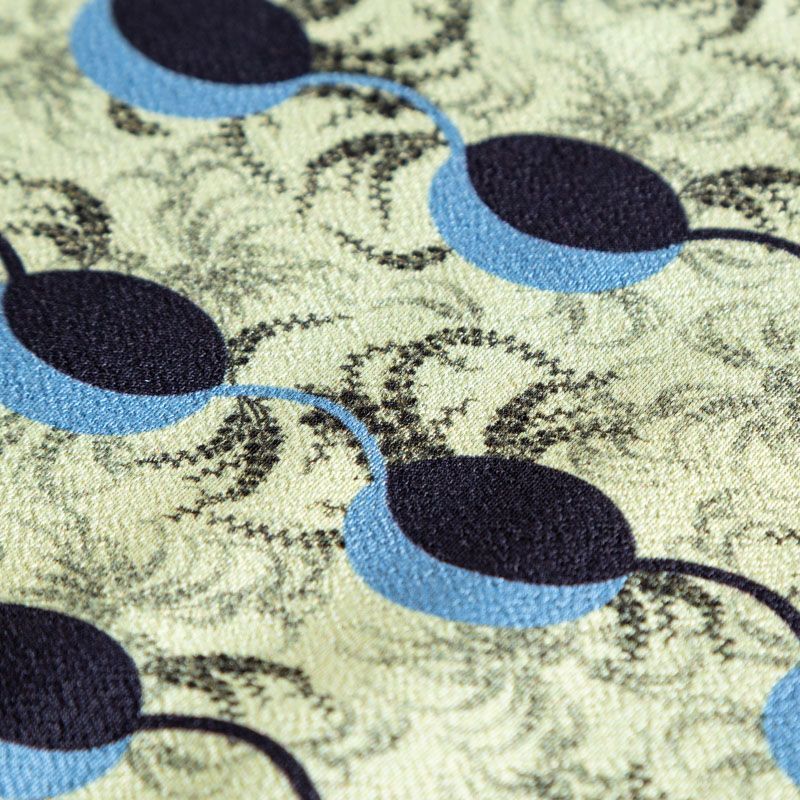 Итальянский вискозный креп плательной плотности светло-серого цвета с абстрактно-геометрическим принтом в сине-голубых оттенках. Поверхность матовая и фактурная, ткань малосминаемая, красиво драпируется, струится и дает объемную складку, не просвечивает.Идеально подойдет для шикарного платья, блузы, юбки, комбинезона, брюк свободного кроя.