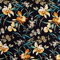 Итальянский вискозный креп плательной плотности глубокого черного цвета с красивым цветочным принтом. Поверхность матовая и фактурная, ткань малосминаемая, тянется за счет эластана в составе, красиво драпируется, струится и дает объемную складку, не просвечивает.Идеально подойдет для шикарного платья, блузы, юбки, комбинезона, брюк свободного кроя.