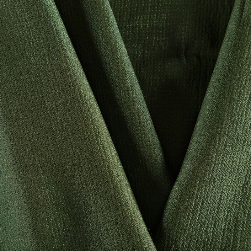 Итальянский креп костюмно-плательной плотности в зеленом оттенке, поверхность матовая, фактурная. Ткань мягкая, пластичная, образует мягкие фалды, не просвечивает. Подойдет для пошива весенне-осеннего костюма, платья, комбинезона, юбки, брюк