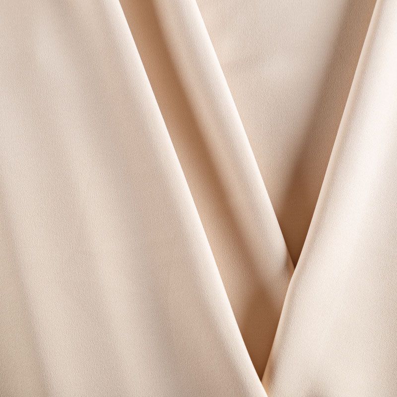 Плотная ткань с гладкокрашеной отделкой. Поверхность полотна матовая, упругая, эластичная, с характерной шероховатой мелкозернистой фактурой. Ткань практически не мнется, отлично сохраняет форму изделия, достаточно мягкая и пластичная. Подойдет для пошива платья, свободных брюк, топа, лонгслива, комбинезона.