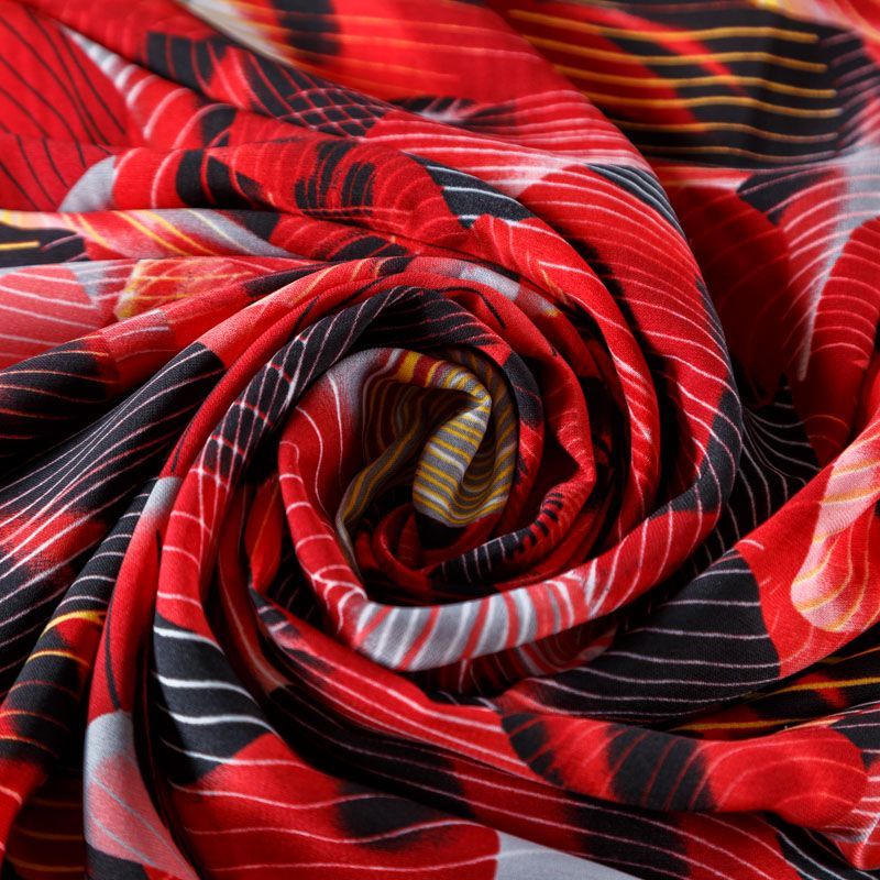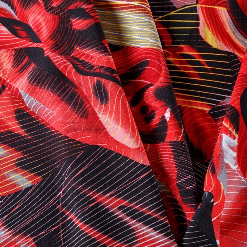 Креп 026-08229 красный принтованный