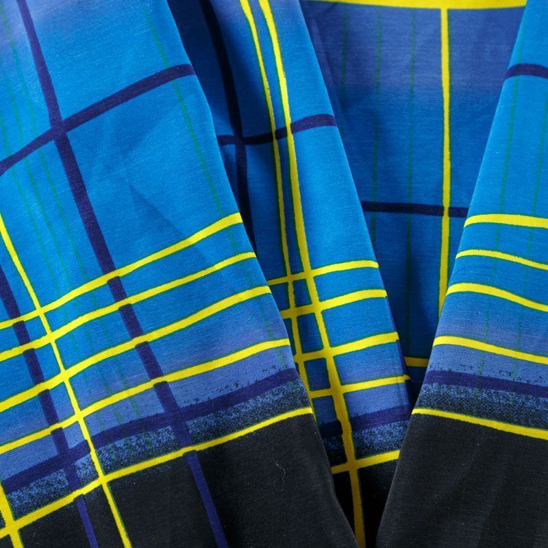 Плательный креп с геометрическим принтом. Ткань средней плотности, не толстая, пластичная, поверхность полотна матовая, с характерной мелкозернистой фактурой, прочная, практически не мнется, хорошо драпируется. Превосходно подойдет для пошива стильного костюма, юбки, платья, комбинезона, топа, брюк.