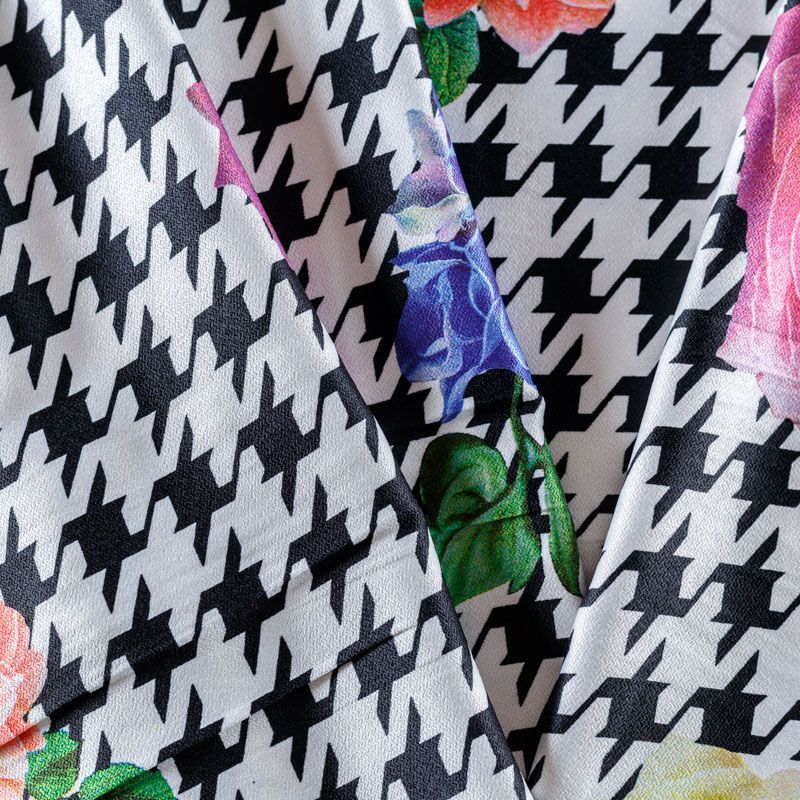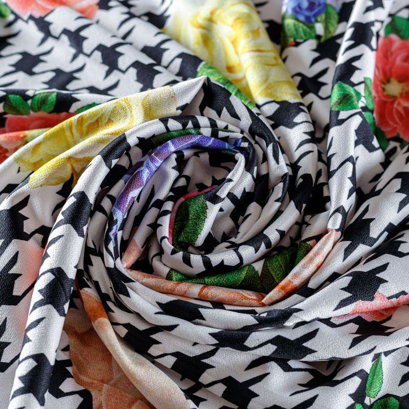 Плательный креп средней плотности, ткань не толстая, пластичная, поверхность полотна матовая, с характерной мелкозернистой фактурой, прочная, практически не мнется, хорошо драпируется, тянется за счет эластана в составе. Превосходно подойдет для пошива свободного костюма, юбки, платья, кардигана, лонгслива, комбинезона, топа, брюк.